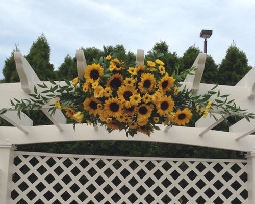 More and more brides are looking for hanging installations or sculptural elements that transform their venue and truly make a statement. The statement can be made with floral choices or bright pops of color, such as the Sunflowers incorporated into this hanging installation.