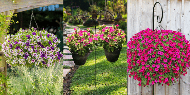 Hanging Baskets are the perfect way to create eye-catching displays around your outdoor space. Hang them from your porch, along your fence line, or walkways for a welcoming entrance. Use shepherd’s hooks in your garden or landscape beds to add pops of color there as well.