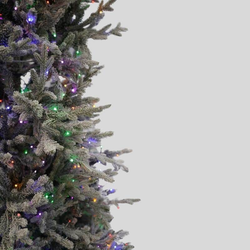 Pre-lit with 1000 Dual Color 3mm Spider L.E.D. Lights. 20,000 Hour Low Voltage Warm White and Multi Color Lights with Power Connect Pole and Multiple Function Remote.