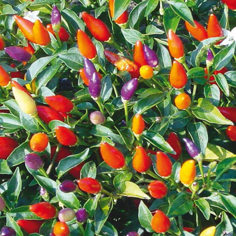 Ornamental Pepper plants are a shrubby little plant with zesty (and hot!) peppers. They’ll add a variety of color – red, purple and yellow – all on the same plant. These plants prefer a location with full sun, although they will tolerate moderately bright light.