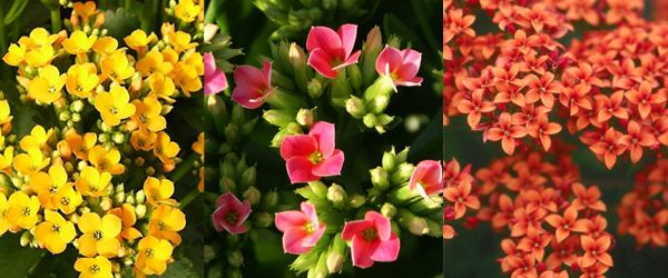Kalanchoe plants are thick-leaved succulents. The clusters of tiny flowers – ranging in colors from peach to bright red – produce a large bloom above their hardy foliage. The flowers are long lasting and like part sun to lightly shaded areas.