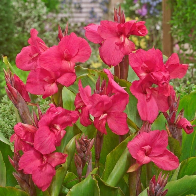 This canna has a gorgeous compact habit with large flowering and bright fuchsia flowers.