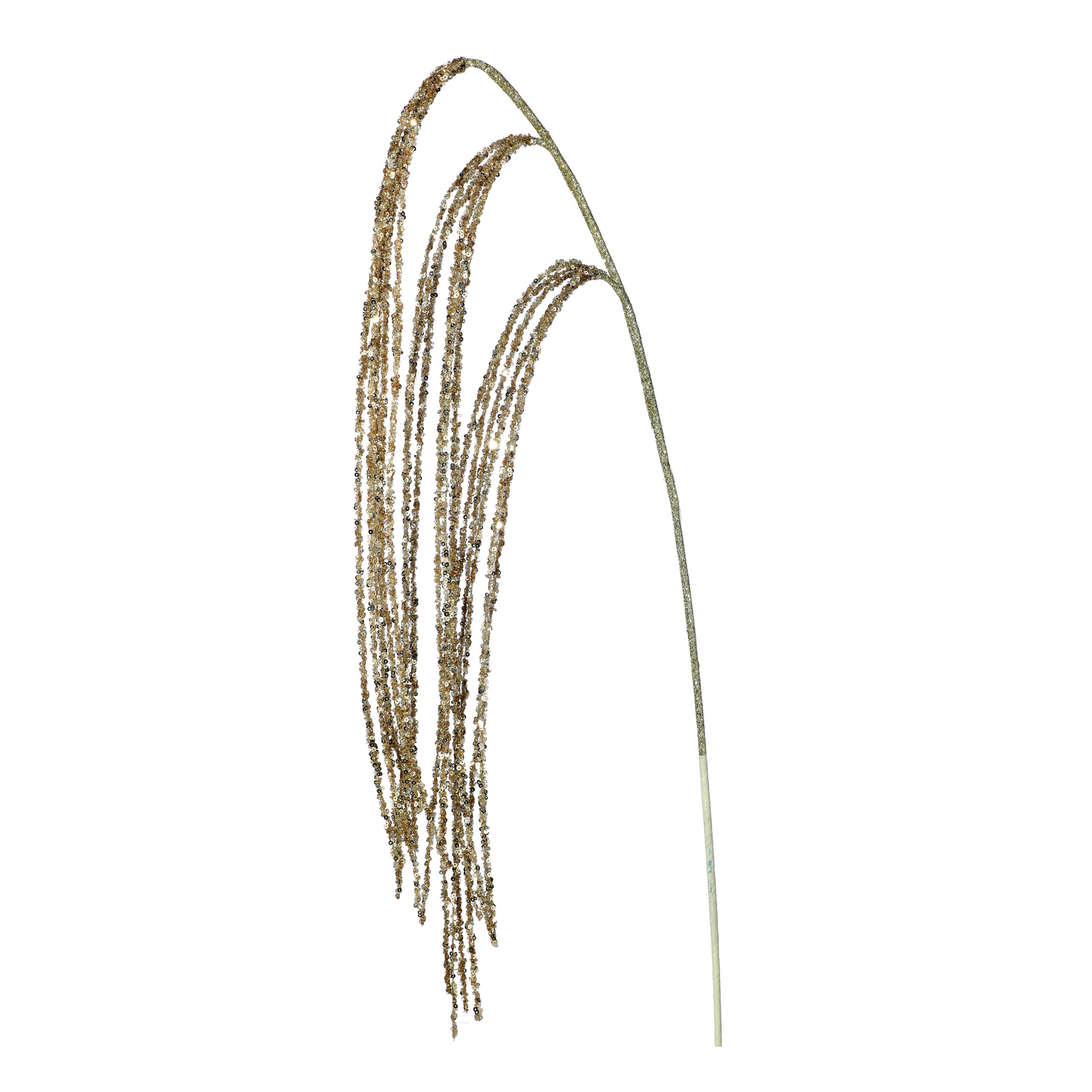 For a beautiful, cascading look – add this champagne beaded branch with sequin details to your Christmas tree.