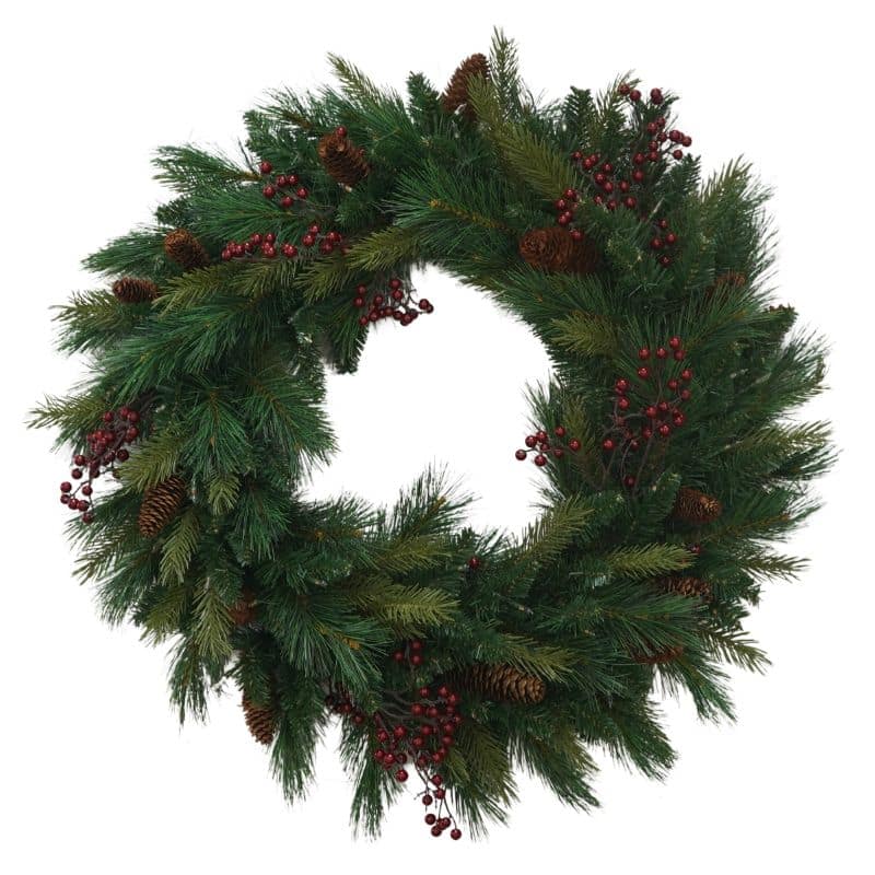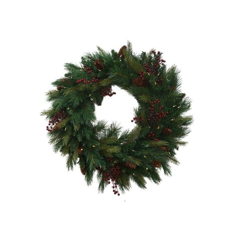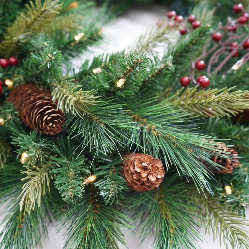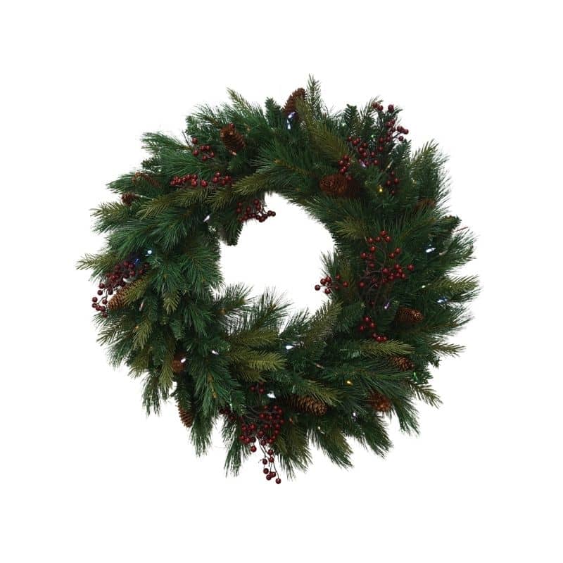 Decorated Fir Artificial Christmas Wreath Pre-lit with Dual-Color LED Battery-operated Lights with Timer
