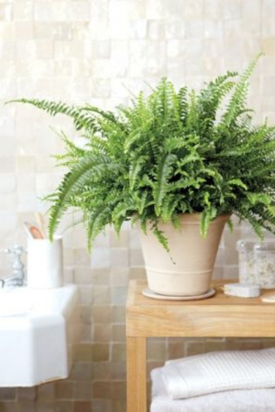 Low light and high humidity make the bathroom the perfect spot for a FERN. In nature, these plants grow in filtered light (underneath the canopy of a tropical forest)! This environment is very similar to that of a bathroom. Place this plant in the corner to add some lush and low-maintenance décor. The bright green color really brightens up a bland and boring space.
