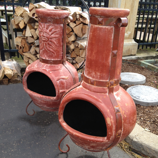 Resembling an oven, chimineas work best to warm the area from the side and make beautiful accent pieces.