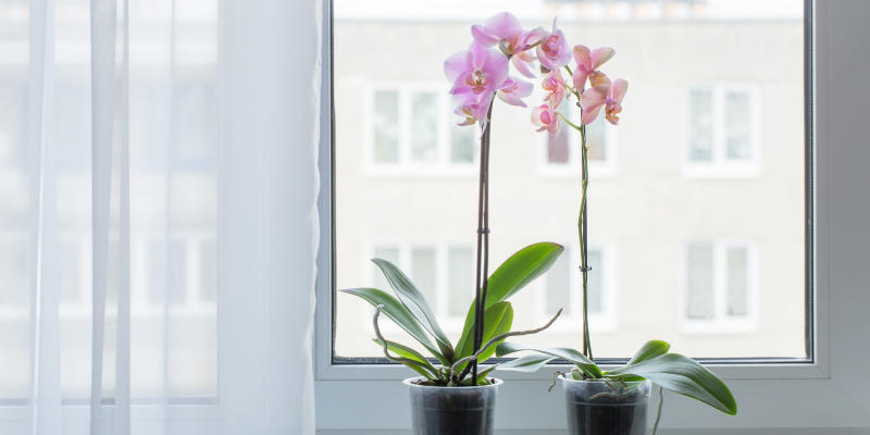Light: Like most flowering plants, orchids like bright light. Placing near an eastern or western facing window will provide them with adequate light.