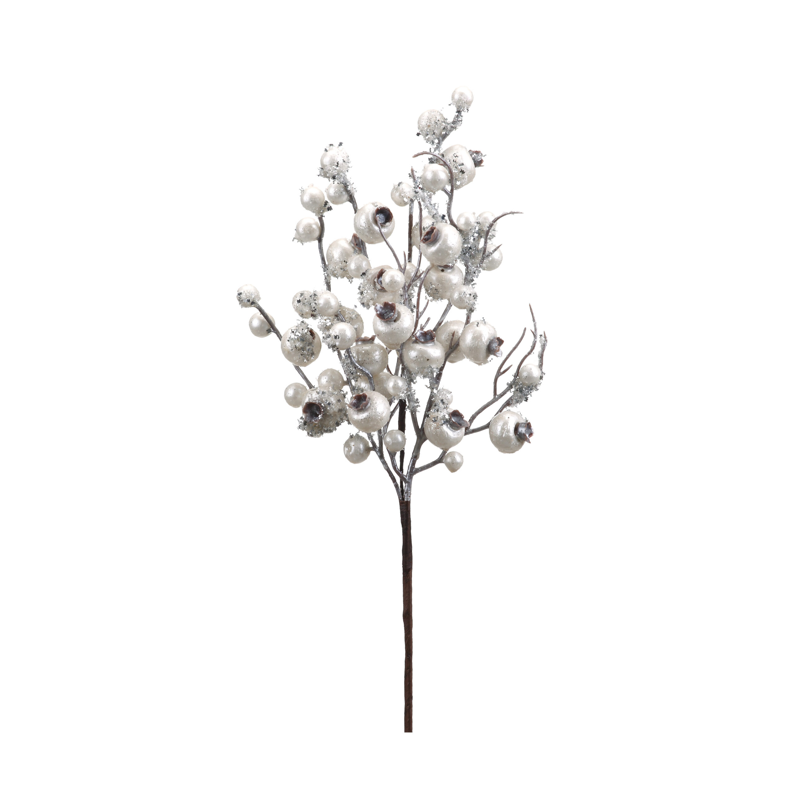 This frosted crabapple pick shines on its own and will fit right in on your Christmas tree.