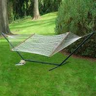 1. Hammocks –Made from tightly knit white nylon rope with sturdy wooden spreader bars. Available at all stores.