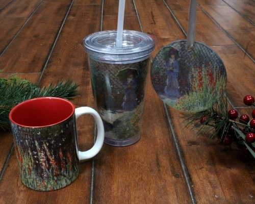 Pair a Monet ornament with Monet-inspired giftware, found at English Gardens. This selection of giftware includes mugs, tumblers, and socks.