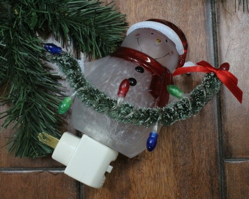 Light up the night with this adorable snowman night light. The miniature lights on his garland illuminate, as well.