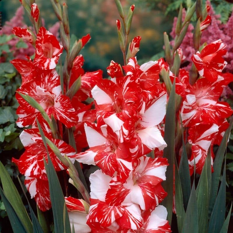 Features a highly unusual color pattern of white and red streaks. Its flowers are bold and showy in the garden and in fresh floral arrangements.