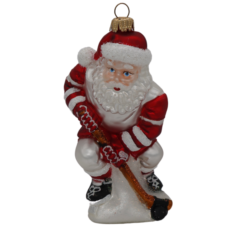 Hey Hey Hockeytown! Santa’s out on the ice. This 5.5-inch glass ornament is perfect for the hockey fan.