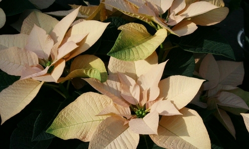 Poinsettias are the classic sign of the holidays. Create a beautiful transition from fall to winter with Autumn Leaves Poinsettias. Autumn Leaves features light orange foliage. Autumn Beauty is another fall-colored Poinsettia that is slightly mauve and sprinkled with glitter.