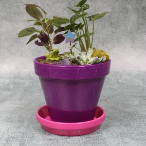 The first step in building your fairy garden is choosing a container. English Gardens carries the Crayon Color Pallet which features fun and bright colors ranging from pink and purple, to blue and orange. Plus, you can mix and match the pot and saucer to match your child’s personality.
