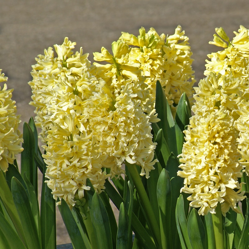 This Hyacinth blooms in the early to mid-spring with soft buttery yellow flowers.