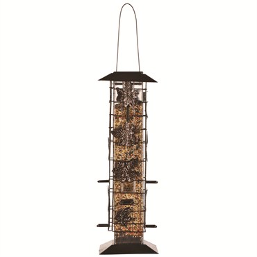Offer Fuel: Make sure you use feeders with large size capacity and/or use multiple feeders to provide ample food, especially during snow and ice storms. Use feeders that deter squirrels and other pests, like the Droll Yankees Flipper Squirrel Proof Bird Feeder. This feeder allows birds to perch on a ring, while spinning squirrels off. English Gardens also recommends Birdscapes Squirrel Be Gone Feeder and Woodlink Audubon Squirrel Proof Caged Tube Feeder.