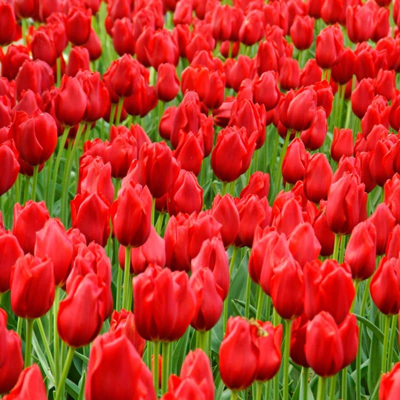 Single Late Tulips are the classic May flowering Tulips, Large dark cherry-red, edged scarlet flowers, Height 20-24″, 8 bulbs per package.