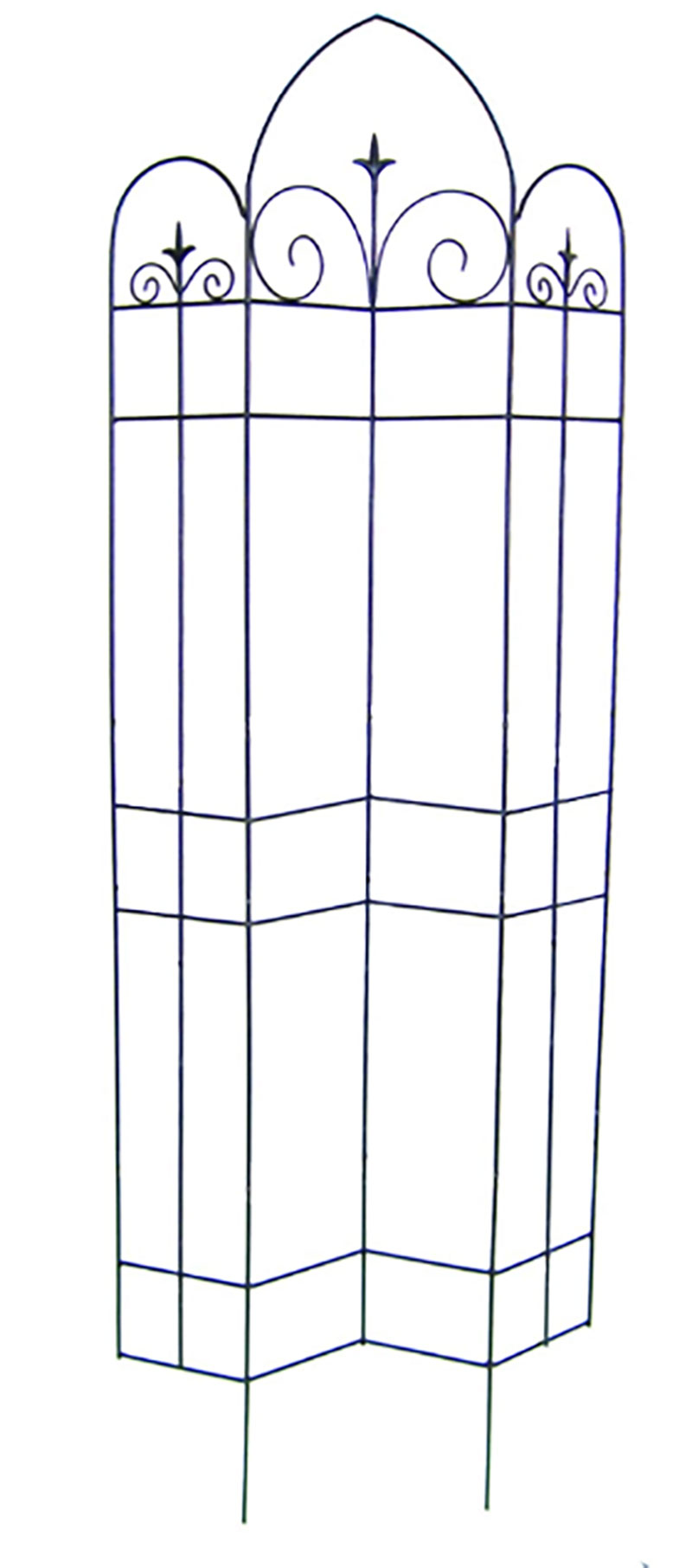 A classic trellis that features scroll designs and finial accents.