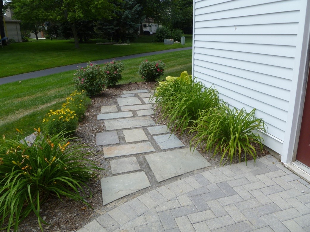 Installing flagstone in mulched beds provides a natural walkway throughout your garden. Flagstone is a natural product that easily blends with the surrounding landscape. Use flagstone to connect areas off a patio, create a beautiful walking path, and even provide access to your water faucet.