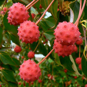 Dogwood trees can grow 15 to 30 feet tall and just as wide. In the fall they have vibrant red/purple fruit, making this a great addition to bring birds into your yard. The leaves also turn a magnificent sunburst orange, making dogwoods a great multiple-season tree.