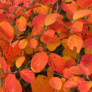 Fothergilla is a compact, slow-growing, deciduous shrub that typically grows two to three feet tall and wide. It flowers with dense terminal bottlebrush-like spikes about one to two inches long, and blooms in April and early May before the leaves appear. Its fall color is a bright red-orange that is destined to catch the eye from a distance. With beautiful flowers in the spring, vibrant green summer foliage, and a magnificent fall color, Fothergilla is a wonderful shrub to incorporate into your landscape.