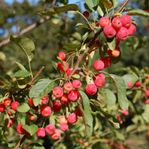 By using different varieties, the flowering period can be extended from early May to early June, with colors ranging from white through purplish red. The small fruits, borne in the fall, are also effective, with colors of red, yellow, and green. Other features of Crabapples are their small size (most less than 25 feet in height) and the variation in growth habit (rounded, horizontal, pendulous, and vase shaped).