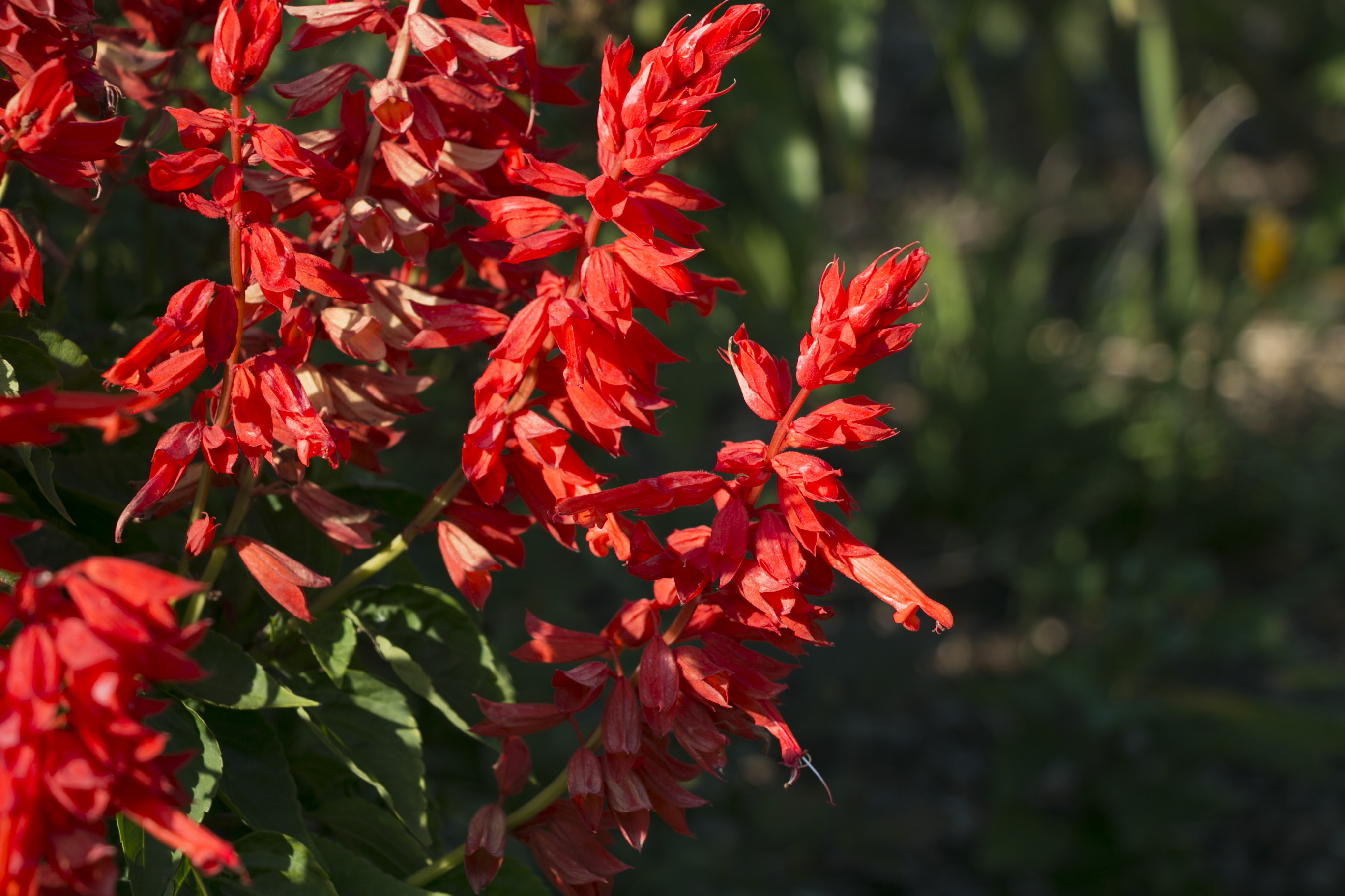 Ablazin Tobasco Salvia shows off the power of a bold color in the back of this landscape bed. Expect color all summer long, sun OR shade!