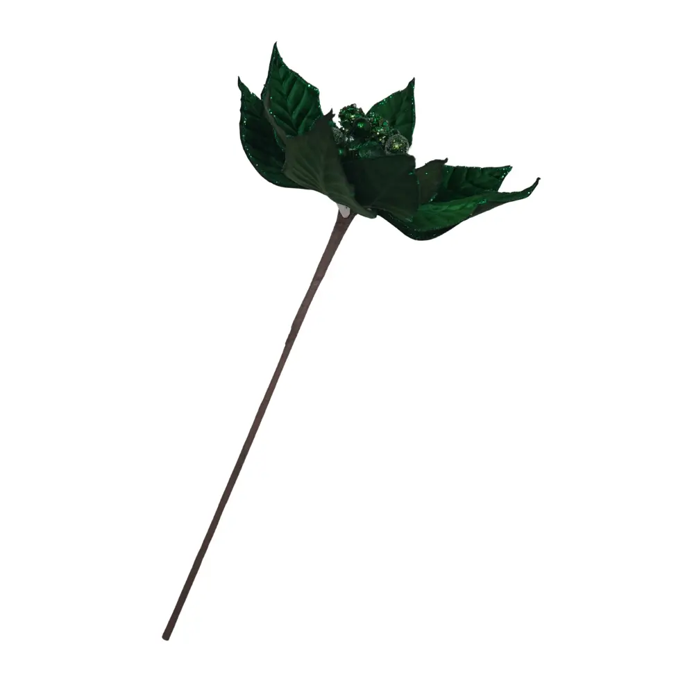 Emerald Green Velvet Poinsettia Pick