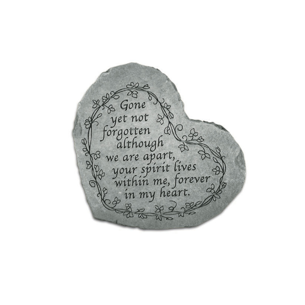 Reads: “Gone yet not forgotten, although we are apart, your spirit lives within me, forever in my heart.”