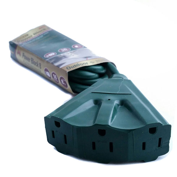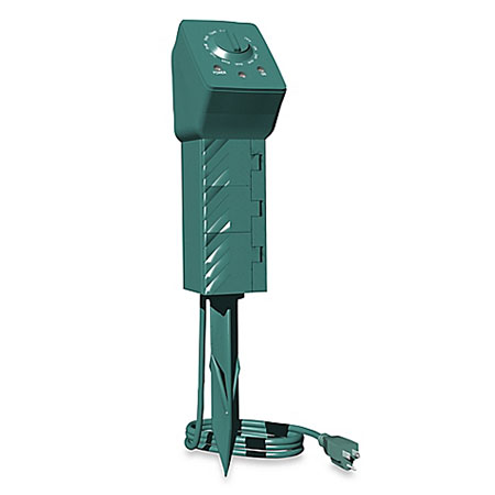 Keep your lights and decorations lit only when you want with this handy outdoor plug bank with a ground stake and darkness sensing timer.