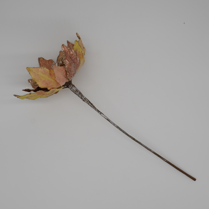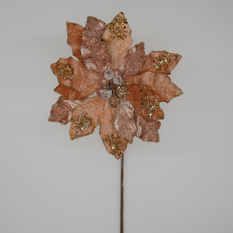 This elegant rose gold poinsettia stem with beaded glitter accents is the perfect holiday decoration.