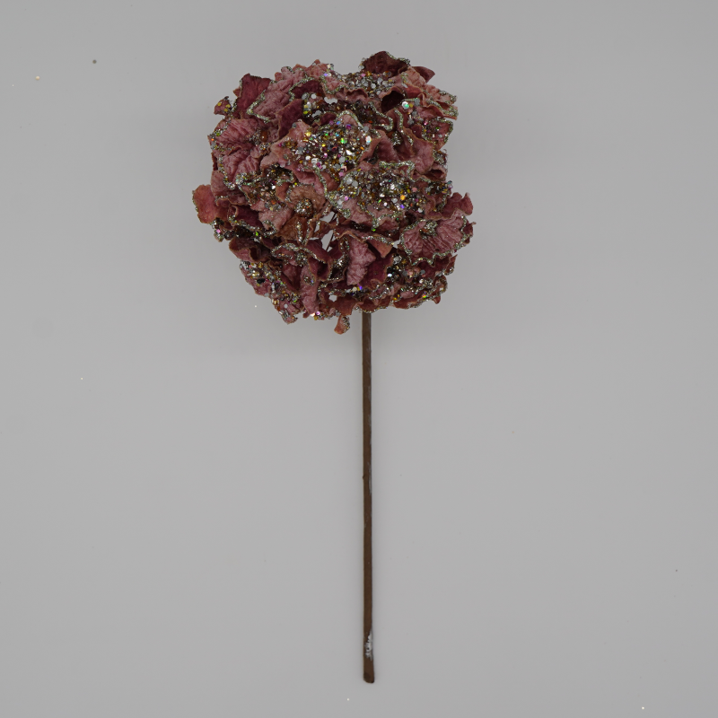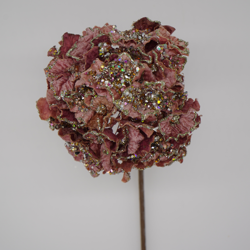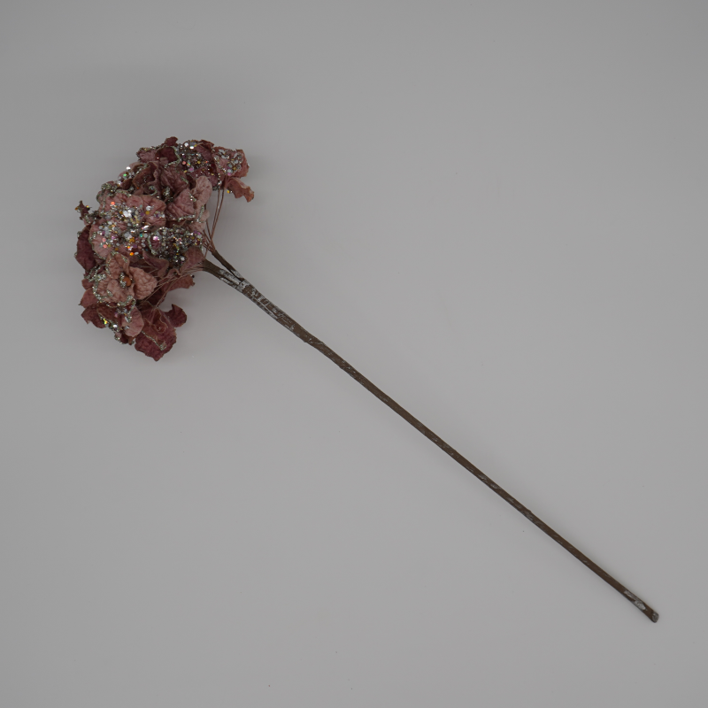 This beautiful soft mauve hydrangea stem with beaded glitter accents will add a touch of beauty and shine to your holiday tree.
