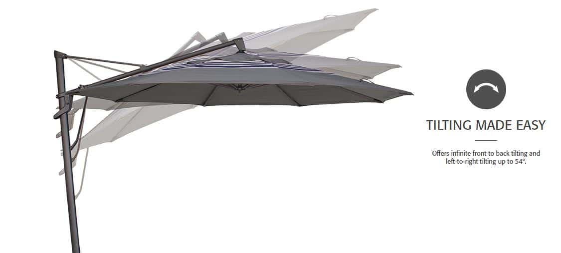 Patio cantilever umbrella with black pole and standard base.