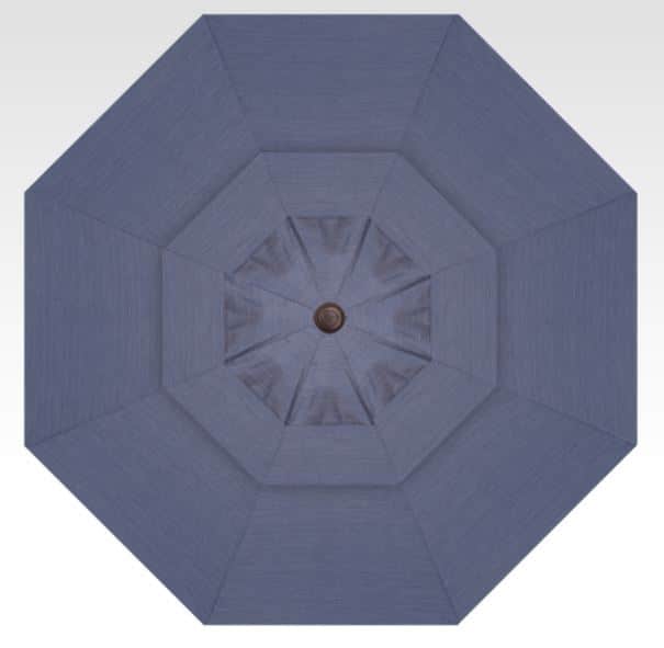 Octagon patio umbrella for table features crank tilt and double wind vent.