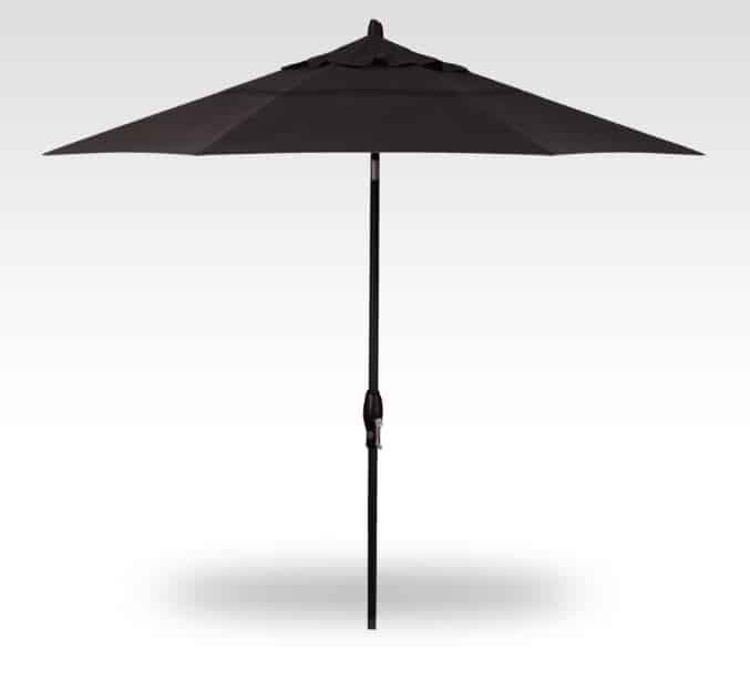 Patio umbrella for table features crank tilt and double wind vent.