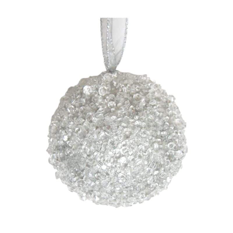 This 4.5-inch ornament is silver colored with a festive icy covering.