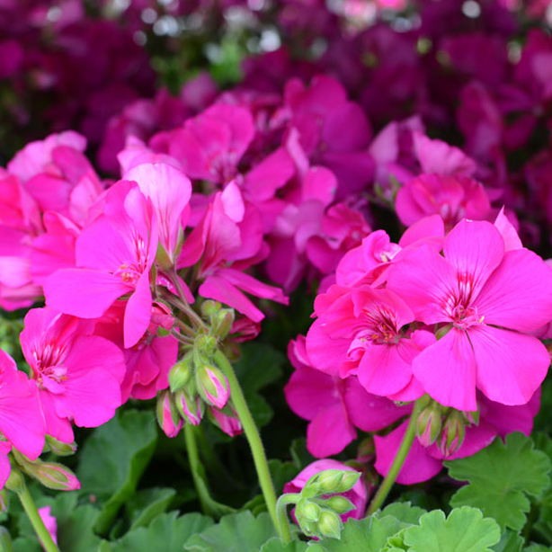 Calliope Geraniums combine the best features of ivy and geraniums: Drought-tolerance, semi-trailing habits and a mounding habit that quickly fills a container or hanging basket. The flowers, are of course, their best feature. The blossoms have a stunning semi-double flower.