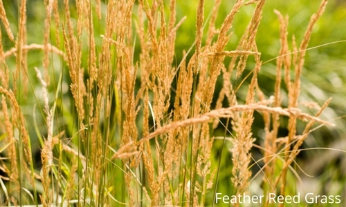 Another option is Feather Reed Grass which tends to grow upwards, rather than arching outward. In early summer, this Perennial Grass blooms small flowers which turns to seed heads, after a few days, that last well into fall.