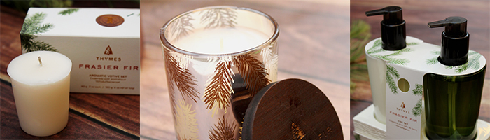 Fraser Fir scented items by Thymes has become a Christmas tradition. The scent of a Christmas Tree, available in candles, soaps