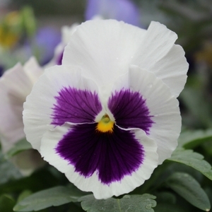 Pansies are recognized for their cheerful blooms in cold weather container gardens. They feature perky foliage with short ruffled blooms. Pansies grow best in a shady area.