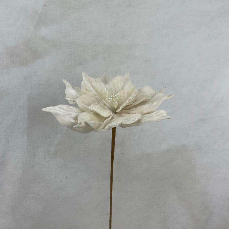 This velvet cream poinsettia is 10-inches in diameter, it is a wondeful addition to any Christmas décor.