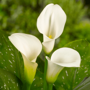 These large blossomed Calla Lilies are the perfect addition to your summer garden this year. With their creamy white flowers atop of green foilage with white speckles, these are truly one of a kind.