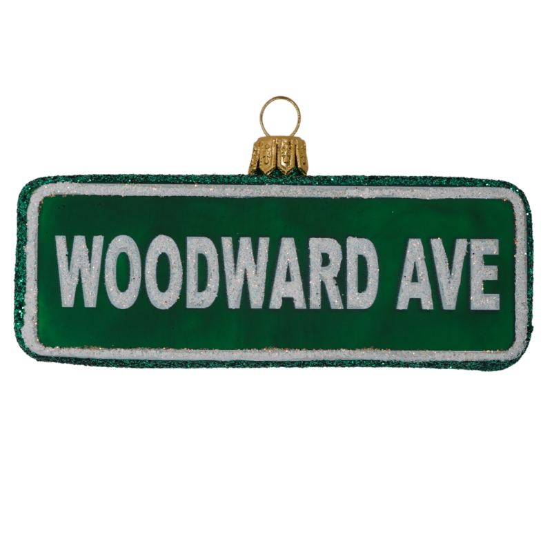 Cruising down Woodward – a Detroit tradition. This 2-inch tall glass ornament celebrates Woodward and the city of Detroit.